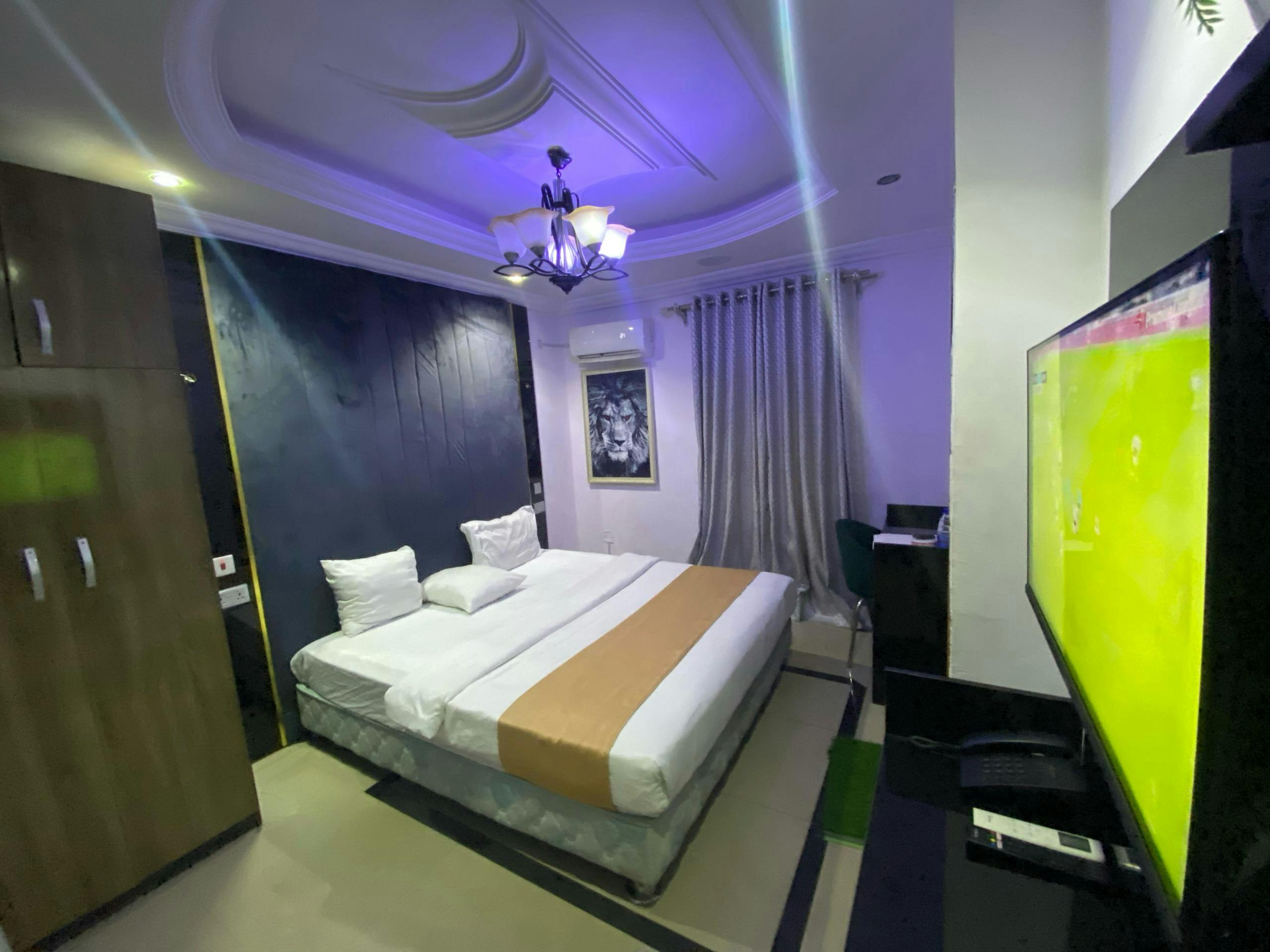 Executive Classic Situated in Ikeja, 3.1 km from Kalakuta Museum, Palazzo Apartments features accommodation with a garden, free private parking, a shared lounge and a bar. This 4-star hotel offers room service, a 24-hour front desk and free WiFi. The accommodation offers entertainment staff and a concierge service. The rooms are fitted with air conditioning, a flat-screen TV with satellite channels, a fridge, a kettle, a shower, free toiletries and a desk. Rooms are fitted with a private bathroom fitted with a bath and slippers, while certain rooms come with a kitchen equipped with a microwave. At the hotel every room comes with bed linen and towels. The daily breakfast offers à la carte, continental or Full English/Irish options. At Palazzo Apartments you will find a restaurant serving African, American and Brazilian cuisine. Dairy-free, halal and gluten-free options can also be requested. National Stadium Lagos is 14 km from the accommodation, while National Art Theatre is 17 km from the property. The nearest airport is Murtala Muhammed International Airport, 5 km from Palazzo Apartments.Executive Deluxe Situated in Ikeja, 3.1 km from Kalakuta Museum, Palazzo Apartments features accommodation with a garden, free private parking, a shared lounge and a bar. This 4-star hotel offers room service, a 24-hour front desk and free WiFi. The accommodation offers entertainment staff and a concierge service. The rooms are fitted with air conditioning, a flat-screen TV with satellite channels, a fridge, a kettle, a shower, free toiletries and a desk. Rooms are fitted with a private bathroom fitted with a bath and slippers, while certain rooms come with a kitchen equipped with a microwave. At the hotel every room comes with bed linen and towels. The daily breakfast offers à la carte, continental or Full English/Irish options. At Palazzo Apartments you will find a restaurant serving African, American and Brazilian cuisine. Dairy-free, halal and gluten-free options can also be requested. National Stadium Lagos is 14 km from the accommodation, while National Art Theatre is 17 km from the property. The nearest airport is Murtala Muhammed International Airport, 5 km from Palazzo Apartments.Executive Royal Situated in Ikeja, 3.1 km from Kalakuta Museum, Palazzo Apartments features accommodation with a garden, free private parking, a shared lounge and a bar. This 4-star hotel offers room service, a 24-hour front desk and free WiFi. The accommodation offers entertainment staff and a concierge service. The rooms are fitted with air conditioning, a flat-screen TV with satellite channels, a fridge, a kettle, a shower, free toiletries and a desk. Rooms are fitted with a private bathroom fitted with a bath and slippers, while certain rooms come with a kitchen equipped with a microwave. At the hotel every room comes with bed linen and towels. The daily breakfast offers à la carte, continental or Full English/Irish options. At Palazzo Apartments you will find a restaurant serving African, American and Brazilian cuisine. Dairy-free, halal and gluten-free options can also be requested. National Stadium Lagos is 14 km from the accommodation, while National Art Theatre is 17 km from the property. The nearest airport is Murtala Muhammed International Airport, 5 km from Palazzo Apartments.Standard Situated in Ikeja, 3.1 km from Kalakuta Museum, Palazzo Apartments features accommodation with a garden, free private parking, a shared lounge and a bar. This 4-star hotel offers room service, a 24-hour front desk and free WiFi. The accommodation offers entertainment staff and a concierge service. The rooms are fitted with air conditioning, a flat-screen TV with satellite channels, a fridge, a kettle, a shower, free toiletries and a desk. Rooms are fitted with a private bathroom fitted with a bath and slippers, while certain rooms come with a kitchen equipped with a microwave. At the hotel every room comes with bed linen and towels. The daily breakfast offers à la carte, continental or Full English/Irish options. At Palazzo Apartments you will find a restaurant serving African, American and Brazilian cuisine. Dairy-free, halal and gluten-free options can also be requested. National Stadium Lagos is 14 km from the accommodation, while National Art Theatre is 17 km from the property. The nearest airport is Murtala Muhammed International Airport, 5 km from Palazzo Apartments.Studio Studio